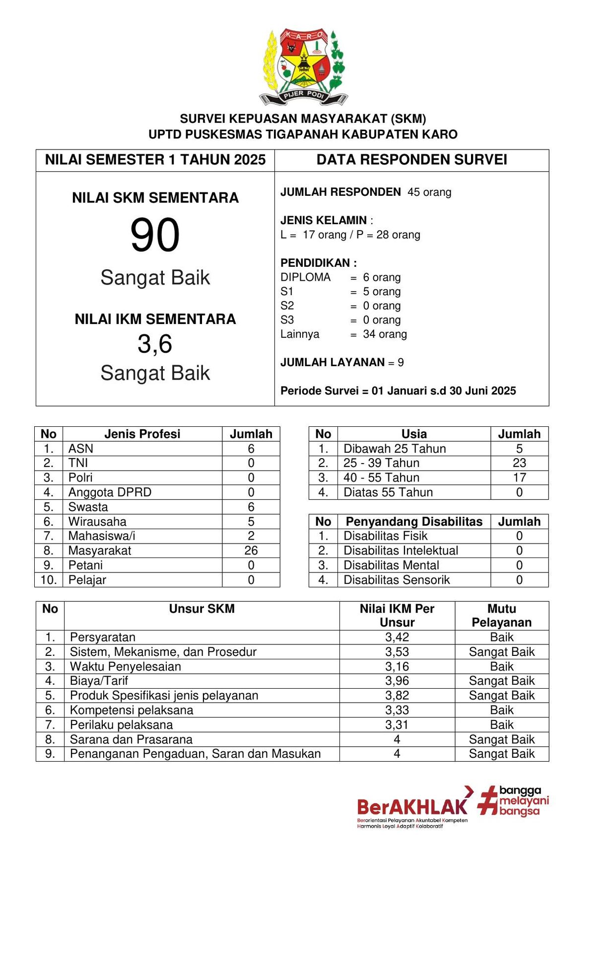 Berikut Survey Kepuasan Masyarakat Terhadap Pelayanan PUSKESMAS Tigapanah ;